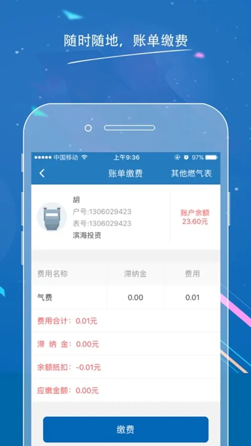 2. 缴费充值,轻松搞定。账单缴费,等都可以在“滨燃宝”掌上轻松完成,不用再去营业厅排队缴费,省时又省力。