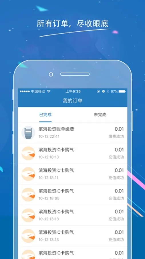 3. 雁过留痕。每笔订单记录,无需翻阅纸质账单,就能查阅所有往期燃气使用记录。