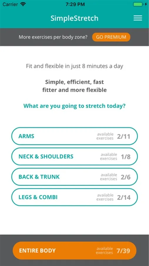 It’s very important to start your day with stretching after a long period of sleep or rest. SimpleStretch offers a range of exercises to stretch your body in a structured way. You can choose from 4 body-zones for specific exercises or stretch your whole body. In this way every body structure will be covered.