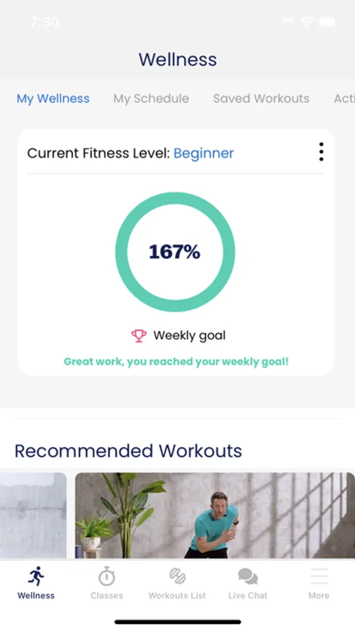 This app allows you to manage your wellness and fitness through personalized recommended workouts based on your goals and level. The workouts are automated or live, with a variety of choices including fitness, mindfulness, cardio, strength, yoga, pre-natal, Pilates, etc.