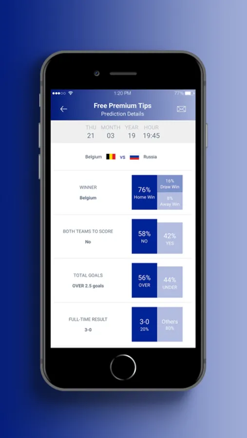 The algorithm of the app predicts Football Results, through the analysis of the Teams' Points, Goals, Game Scores and the League Positions.