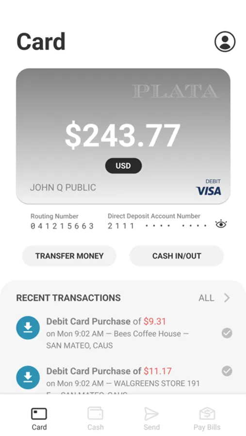 IMPORTANT: Please do not attempt peer-to-peer transfers via the ePlata Cash Account if you do not reside in a licensed state or a country that does not prohibit its use.