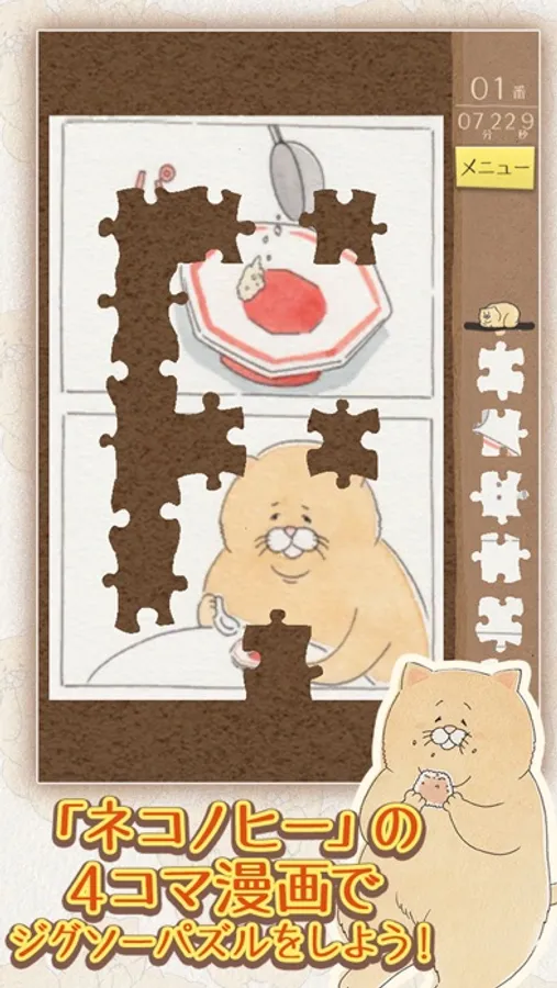 ネットで話題の残念な猫「ネコノヒー」がパズルアプリになりました!