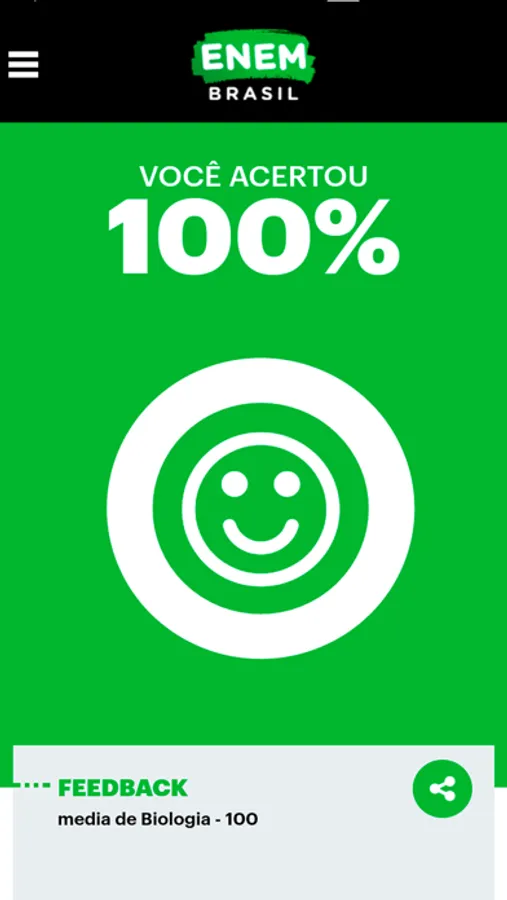 Assim que cada etapa é concluída o aplicativo informa qual foi o rendimento deste aluno por matéria e sinaliza em qual matéria específica o mesmo precisa se dedicar mais aos estudos para garantir um bom resultado em seus futuros exames.