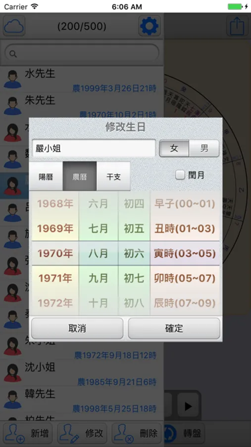 ●提供「陽曆、農曆、干支」來輸入出生日期,可任選一種方式輸入即可。