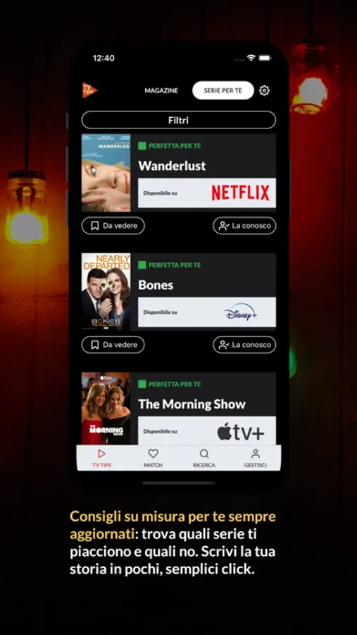 INTELLIGENTE: TV Tips è l’App perfetta se tra i tanti titoli presenti sulle piattaforme di streaming non sai quale serie tv iniziare e sei stufo di guardare per ore i suggerimenti degli algoritmi che non ci azzeccano mai!