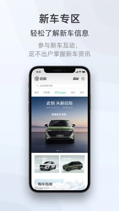 启辰APP是东风日产 启辰为用户打造的集用车、看车、玩车等服务于一体的官方平台。您可以在此获取启辰汽车的最新资讯,及时掌握官方购车优惠政策。启辰车主还可以通过手机随时掌握爱车的车辆状况对爱车进行远程操控,享受专业的售后服务。我们致力于为启辰车主提供前所未有的智能化科技服务和个性化出行体验。