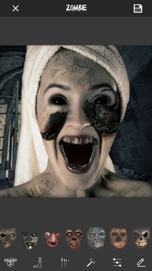 Zombie Photo Maker is a professional photo editor tool and spooky photo editor for decorate and makeup face become a zombie with Zombie Effect.