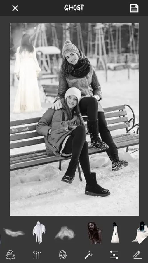 Ghost Photo make creepy, scare photo or ghost house to threaten everybody. Add a ghost when you in the old house, in the forest, in the park...