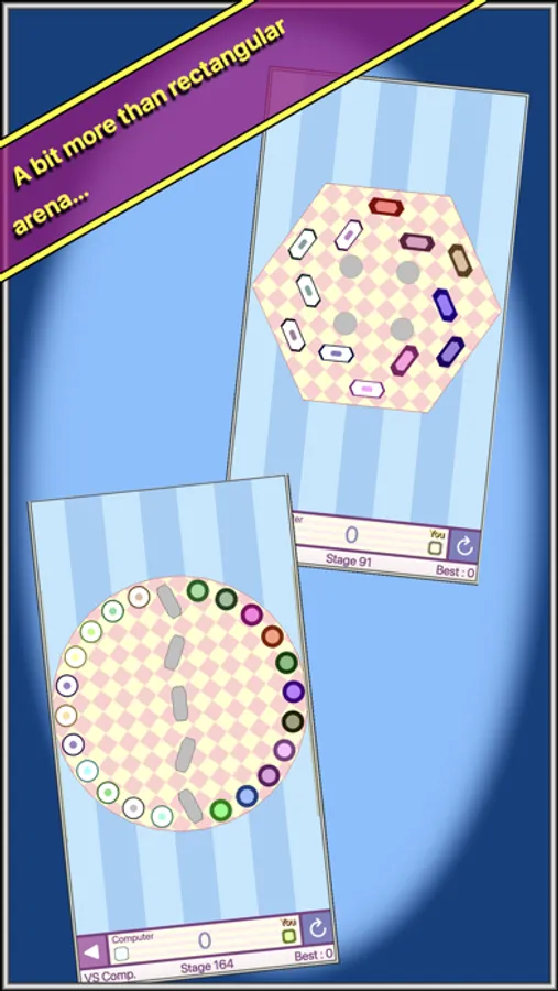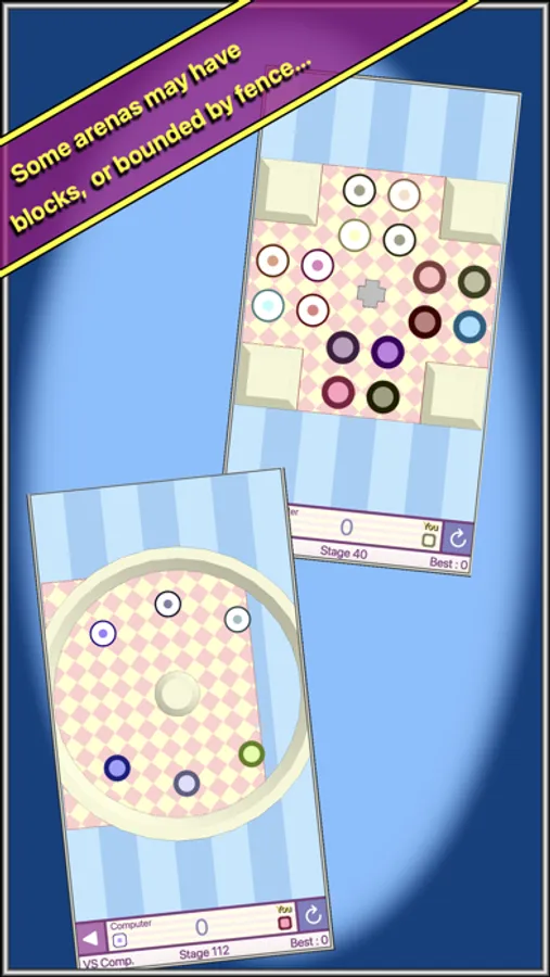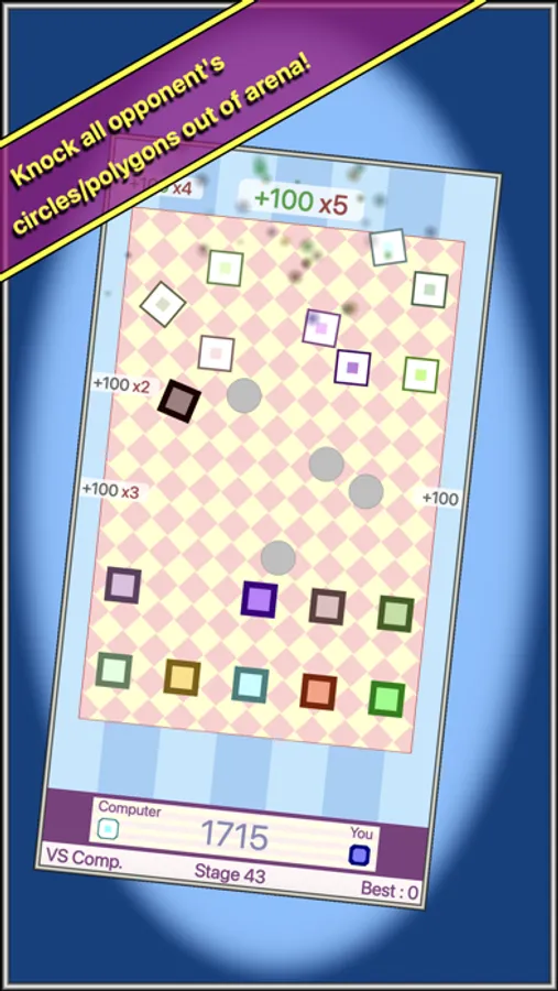 In this game, your goal is simple : knock all of your opponent's circles/polygons out of arena ! There are various of object types and arenas with various shapes.