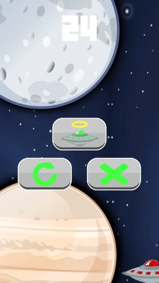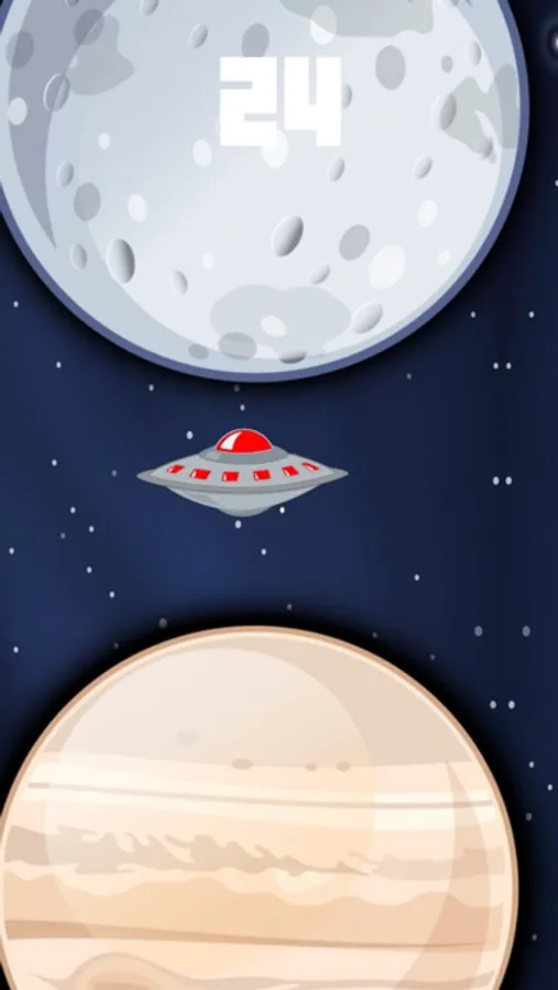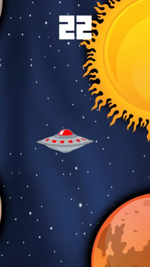 Solar Saucer is an arcade-style game of speed and agility. You are trying to navigate your space saucer through the planets of the solar system. Tap to gain altitude and plan your course through the narrowing gaps between solar objects. The farther you go, the more points you get! Try any of three levels of difficulty to test your ability to pilot through the treacherous reaches of nearby space!