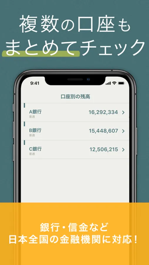 本アプリは金融機関のインターネットバンキングと連携し、ご利用者様が登録した口座情報等を取り込みます。