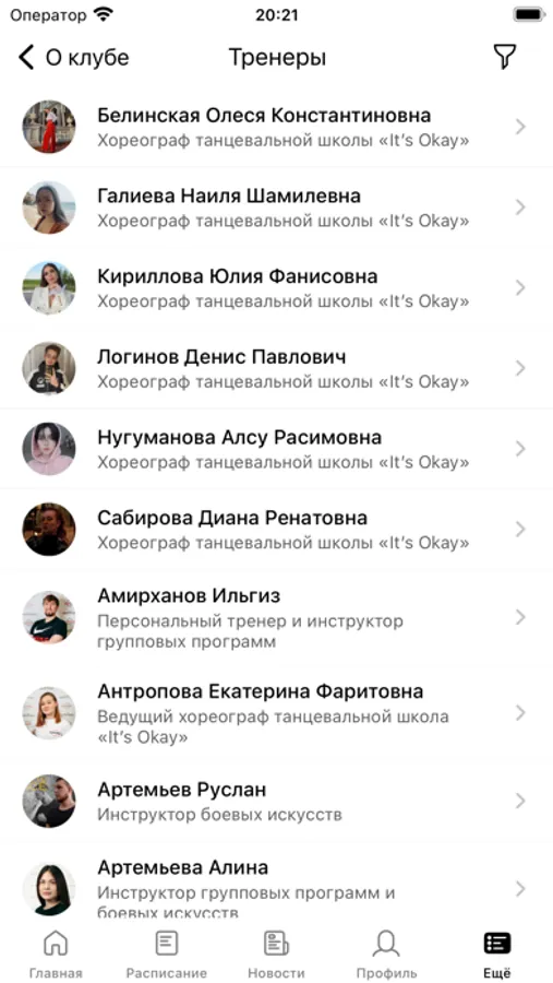 С помощью приложения вы можете следить за новостями, расписанием клубов, оперативно получать информацию об изменениях в расписании и специальных предложениях.
