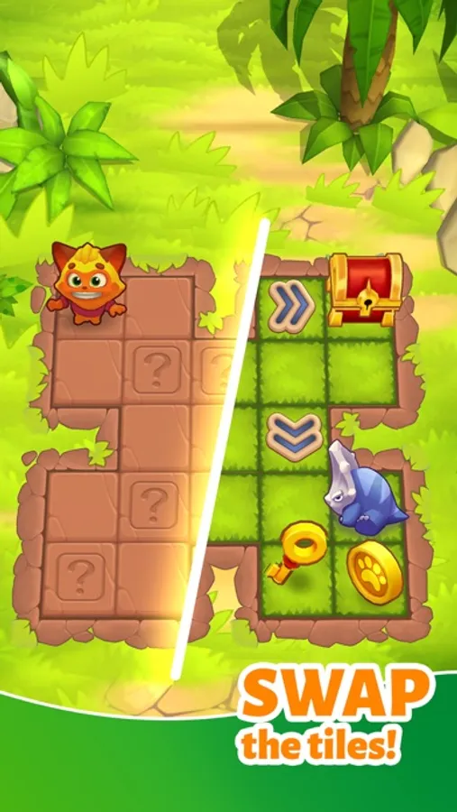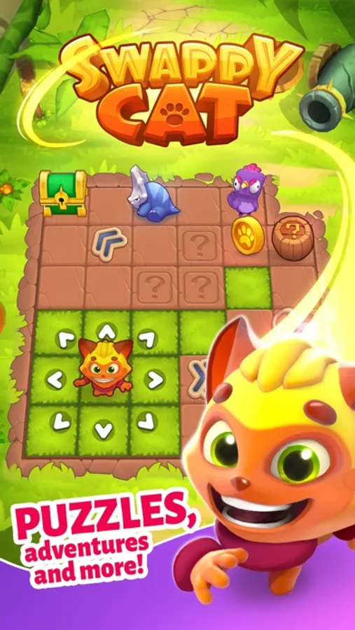Swappy the cat likes treasures and looks for them all over the world. Chasing shiny coins took him to mysterious jungles with whole piles of gold, however sly pigeons won't let grab them that easily!