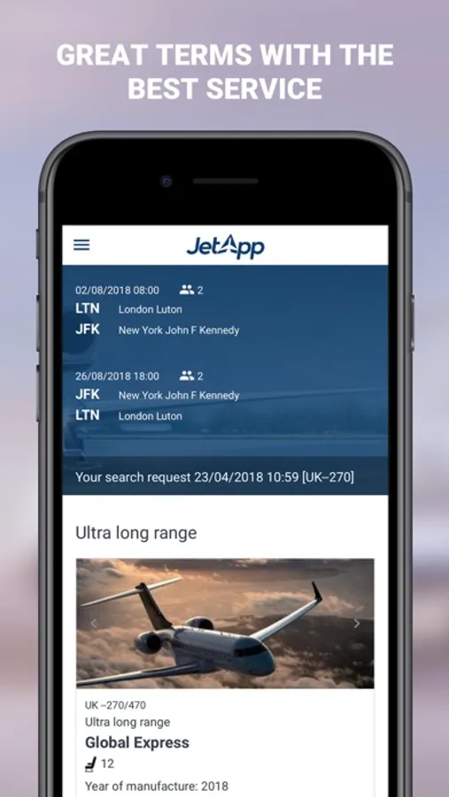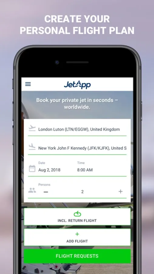 JetApp’s key features are its 100 percent flexibility, complete professionalism in every detail and it is always just a swipe away on your mobile device. We are looking forward to receiving your flight inquiry!