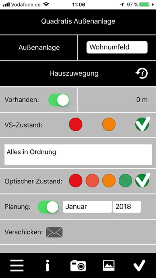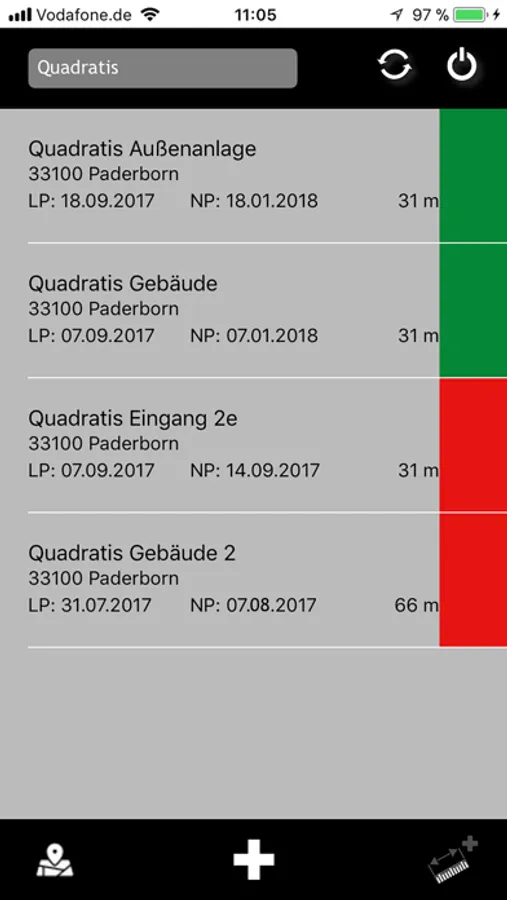 Während der Bestandsaufnahme definieren Sie, welche Gegenstände regelmäßig und in welchen Abständen geprüft werden sollen. Die Gegenstände werden mit GPS-Koordinaten gespeichert, hierdurch können diese bei den nachfolgenden Prüfungen schnell gefunden werden. Außerdem beweisen die Koordinaten, dass wirklich jemand vor Ort war, somit werden die Prüfungen rechtssicher.