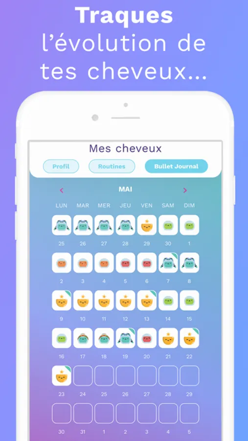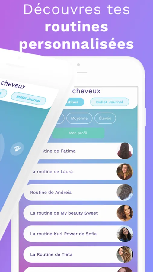 Puis tu as accès à des routines complètes sur mesure pour ton type de cheveux: produits, gestes, temps de pose, accessoires, suivi…