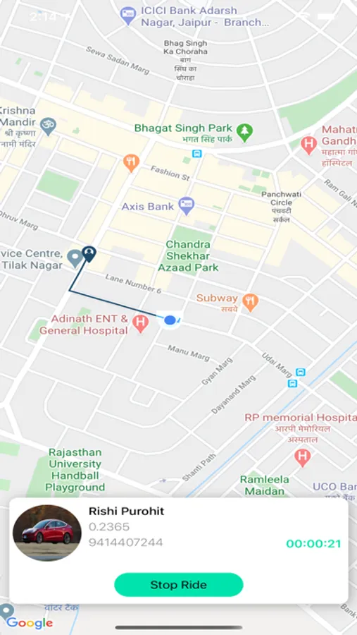 Google Map Path Tracking - The driver can track the path of travel between the point of pickup and drop. Driver app is equiped with real time trip tracking system.
