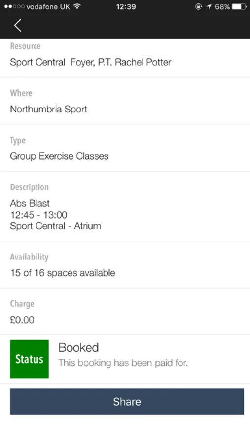 Share fitness classes, news, centre information and offers with your friends and family at the touch of a button.