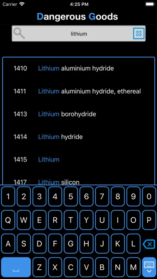 - Smart Search: Offline access to all data from Dangerous Goods list. Our specific DFD algorithm enables an on-the-fly predictive search by UN number or product name indistinctively. Lightning Fast: What you search is INSTANT.