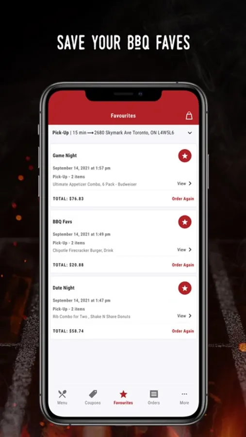 • Re-order your faves with ease: Save “Favourites”, set up a “Quick Order”, choose to “Repeat Last Order” or view your full “Order History"