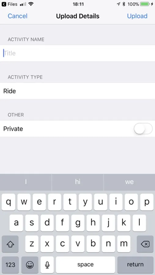 If the filetype to upload is gpx then StraUpload will attempt to discover the activity name from the GPX file. If the upload type is tcx or fit then the activity name will be based on the filename.