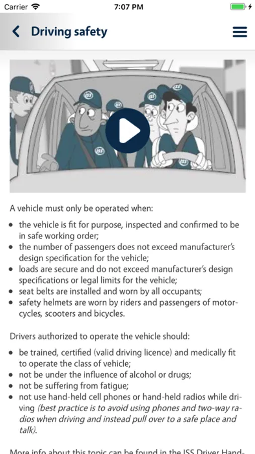 ISS operates in more than 50 countries and our employees come from over 150 countries and speak many languages. The challenge is to ensure that our employees understand the safety culture we wish to embed in our operations. For these reasons we developed an animation film covering each of the ten ISS Safety Rules. Each clip covers a specific rule and has key messages embedded in them. The objectives of the film are to make these Rules more accessible and understandable. The film is without voices, ensuring that language is not a barrier for understanding the rules.