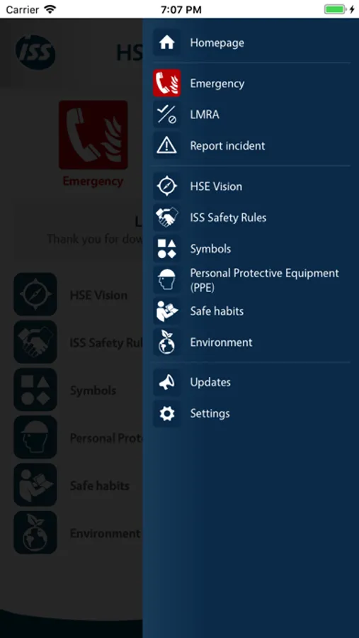 The following functionalities are available in the ISS HSE app: