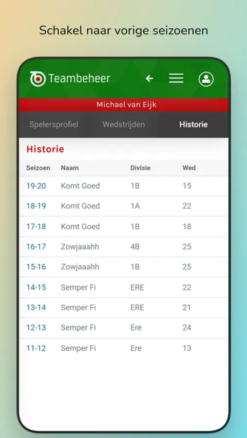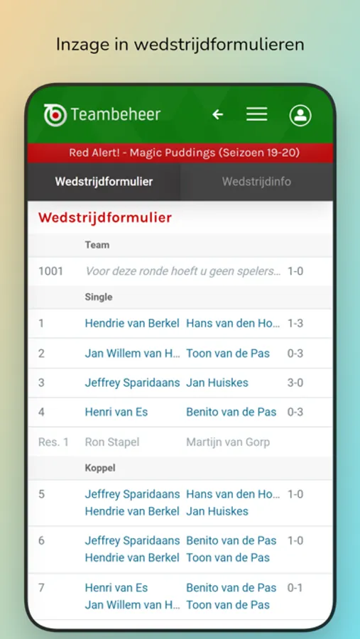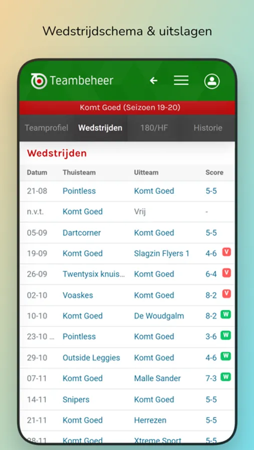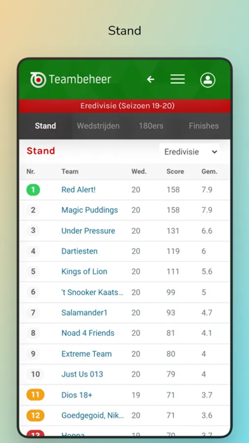 Alle dartbonden die bij de Teambeheer zijn aangesloten kunnen nu hun competitie volgen in de Teambeheer App. Een overzicht van wedstrijden, uitslagen en standen uit de competities van je eigen dartbond, van andere dartbonden in Nederland en ook van de landelijke competities georganiseerd door de Nederlandse Darts Bond.