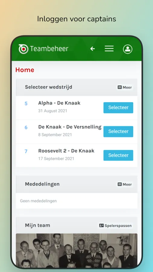 Captains kunnen inloggen voor het inleveren van wedstrijdformulieren, pascontrole en het regelen van overige zaken.