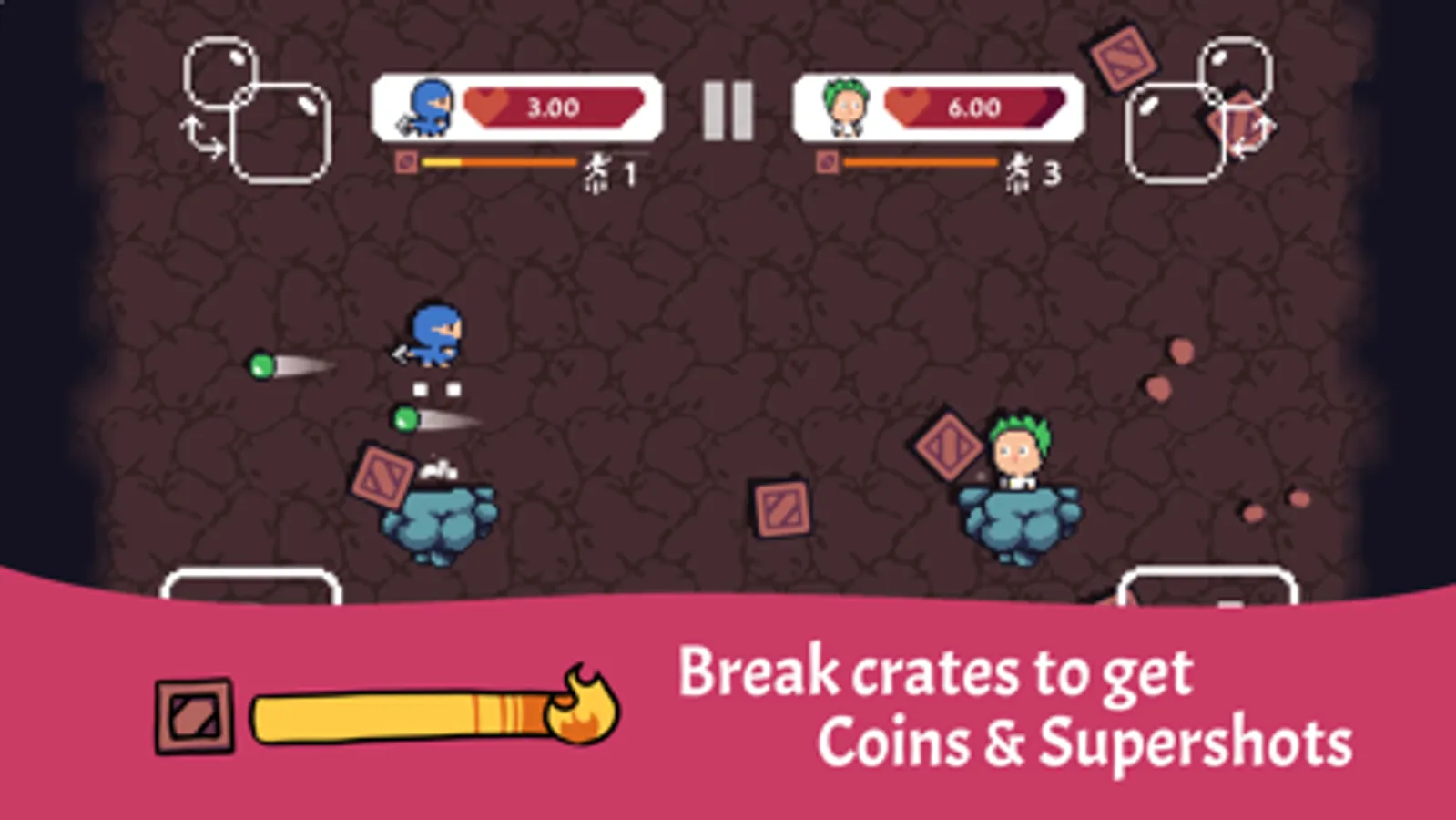 Braking crates also charges your ultimate shot and gives you coins to purchase upgrades with for your warrior.