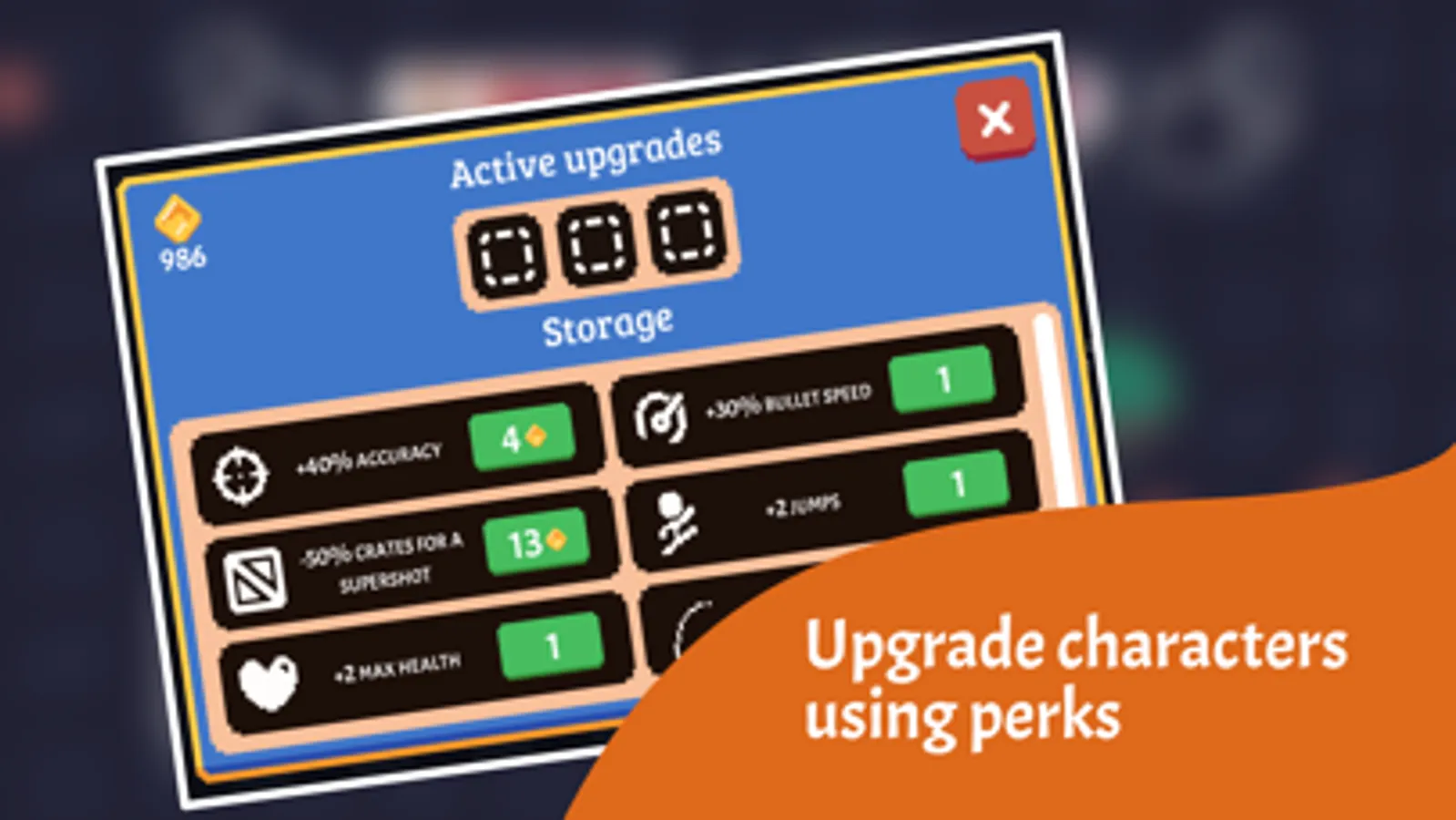 Break crates for power-ups and collect coins to buy perks for your warrior.