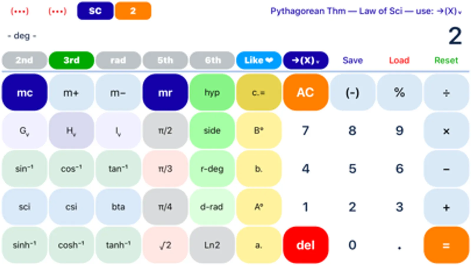 • 2 – Pythagorean Thm — Law of Sci — to enter, use: →(X)v