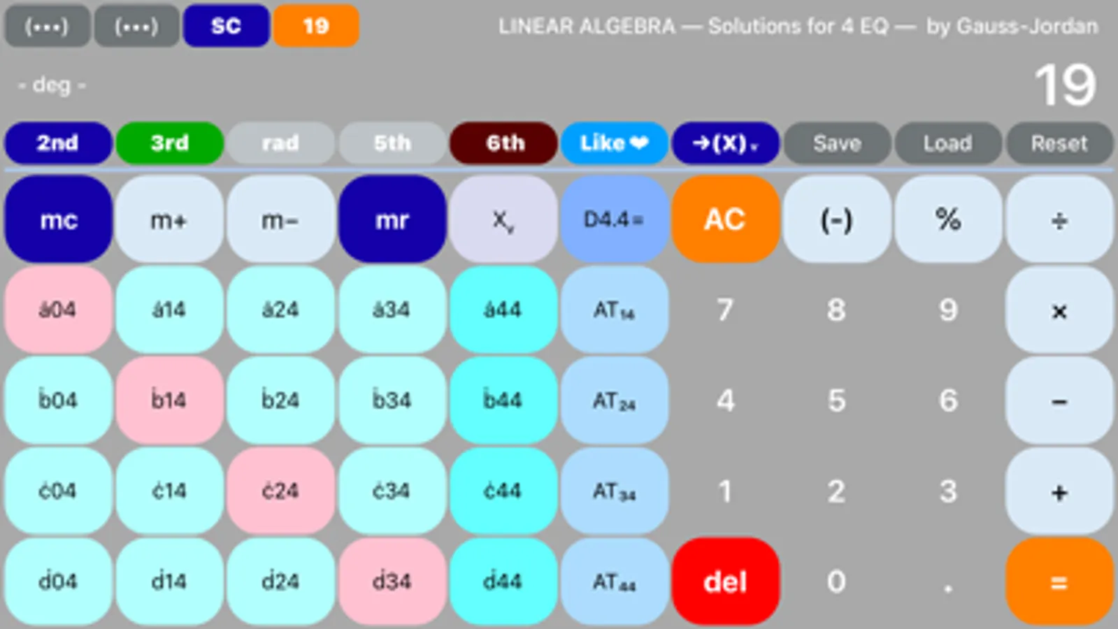 • 18 – LINEAR ALGEBRA — System of 4 EQ — to enter, use: →(X)v
