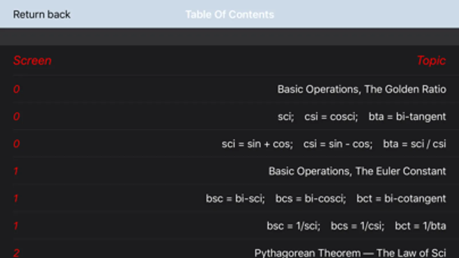 Introducing SciPro Math, the first Polymorphic Calculator. With the help of function keys to navigate, users discover that the App contains 16 different screens filled with all kinds of exotic mathematical operations. It works like magic.