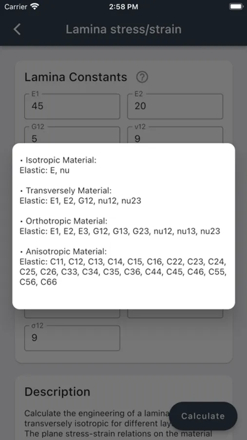 3. Calculate effective solid stiffness matrix and engineering constants for the solid model.