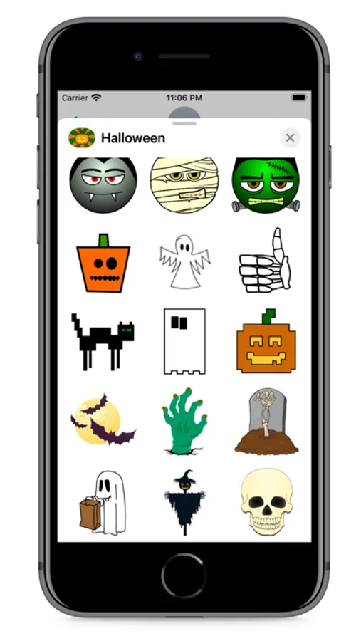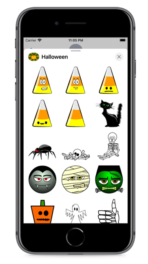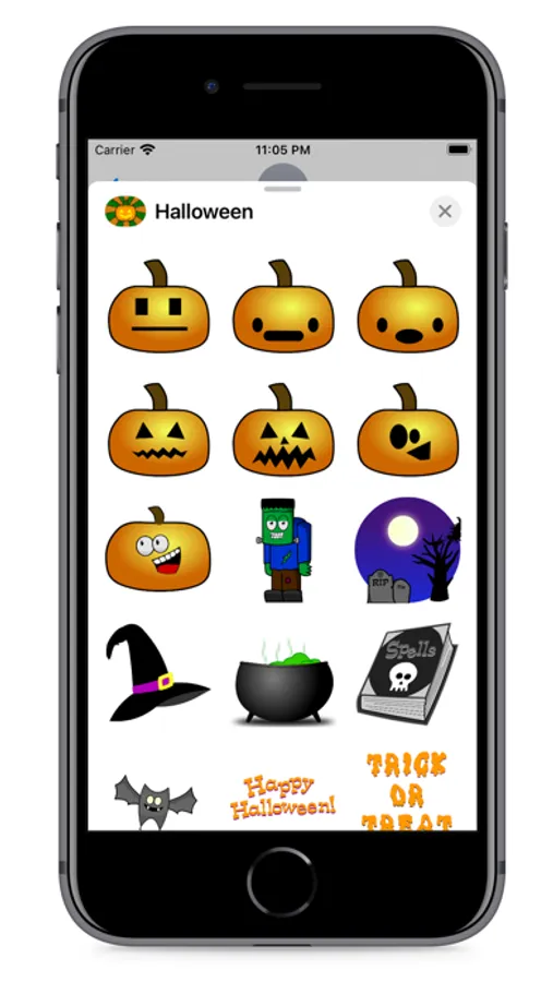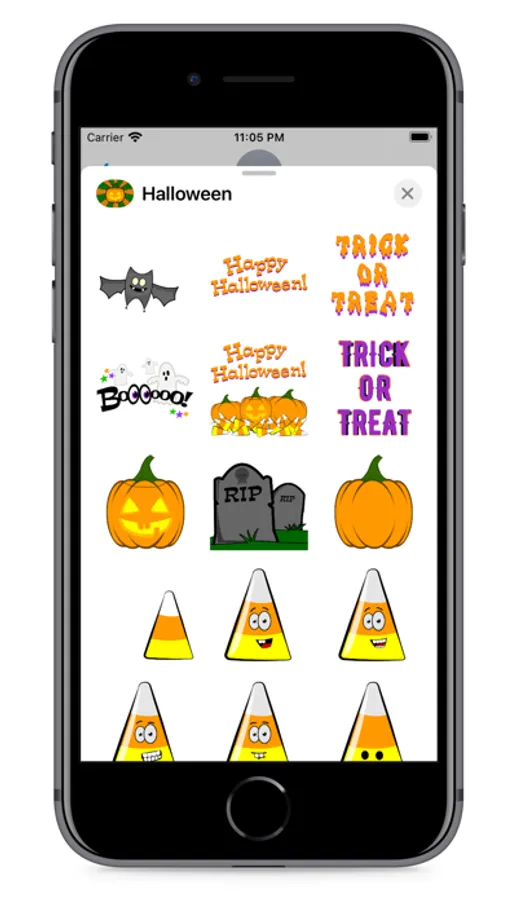 Happy Halloween! Say it with silly Halloween stickers! This pack contains 48 stickers in total, with 12 animated. They're a great family friendly way to wish your friends and family a happy and safe Halloween!