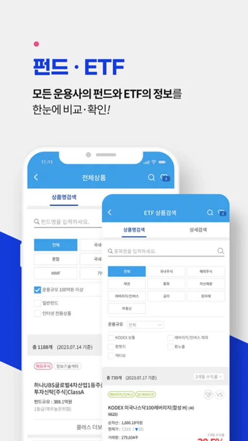 - 대한민국의 모든 ETF와 펀드의 정보를 한곳에서 확인하고 비교해 볼 수 있습니다.