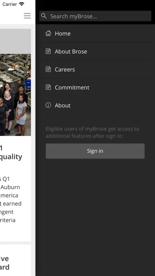 The "myBrose" app keeps you up to date: Information about the company, the latest news and a selection of job offers are available to all interested parties. In addition, "myBrose" offers a login area for employees of the Brose Group. Here they find current information from their field of work - quickly and conveniently on their private smartphone.