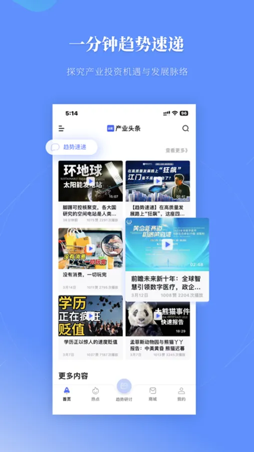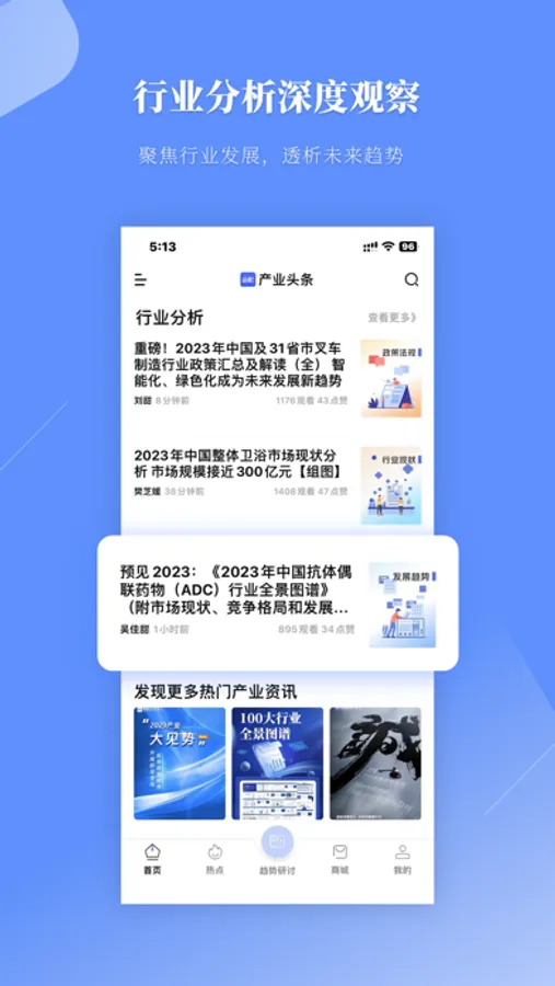 每日了解到各行各业的发展情况,现状数据,行业市场格局等行业数据,有助于用户在投资决策时作为参考依据。