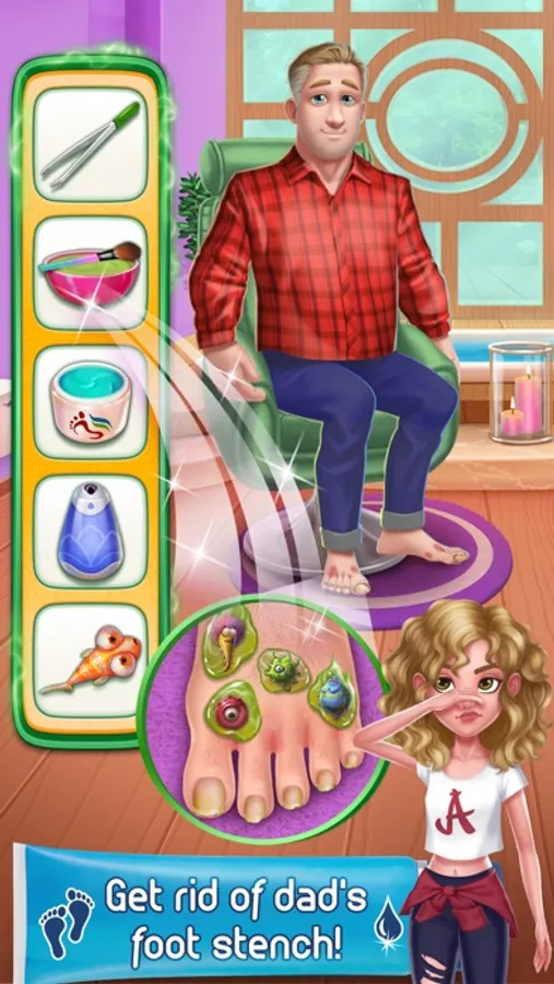 You’ve been working hard with your best friend to plan the birthday party of your dreams - a pool party! From designing the party invitations to choosing a fun music playlist, everything’s going great… when all of the sudden a stinky odor fills the air. The smell from your dad’s feet is so horrible that it could destroy the party. You’ve got to do everything in your power to get rid of that smell before the big day!