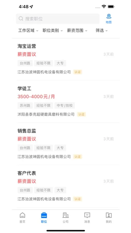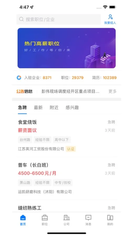 基于地理位置的岗位筛选,让您快速找到钱多事少离家近的工作。