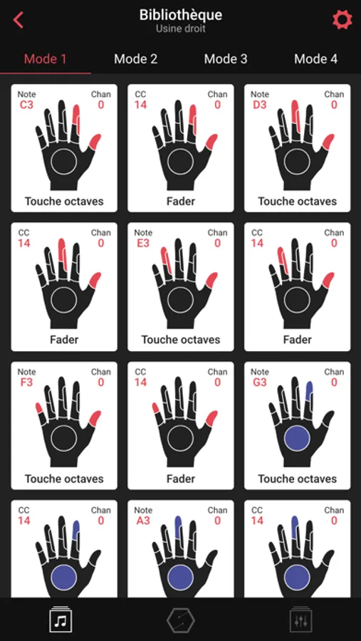 • Custom, the workshop for your preset creation (only for Specktr Pro) : Open the « Custom » tab then create your own presets, choose your finger position, your gesture and assign it in a simple way to a MIDI control that you can use on your applications and favorite software. 1500 possibilities for you to play !