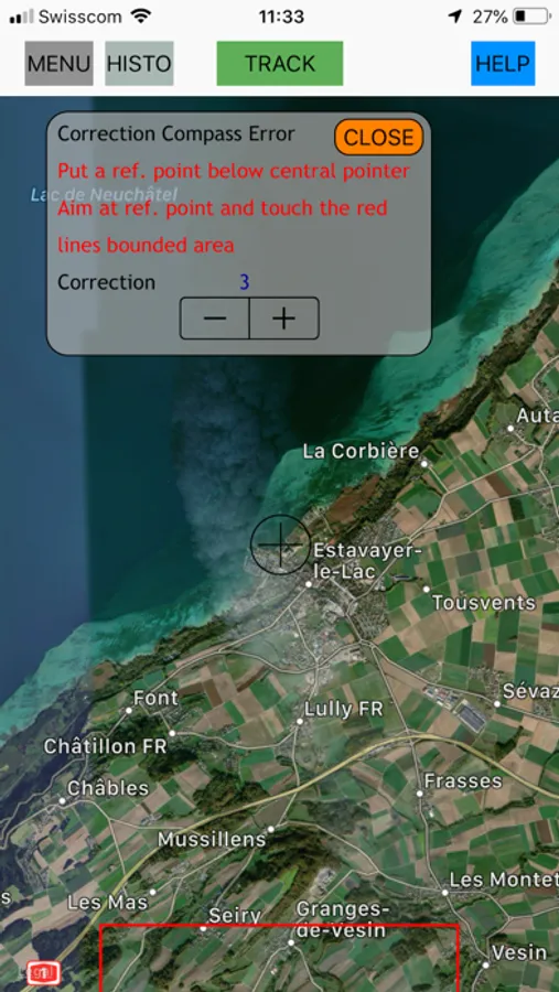 If you see a geographic point you know and you can find it on the map, you have the possibility to set a compass correction