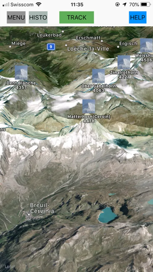 5) Possibility to show the swiss Mountains. To reduce the number of mountains, a filter on the altitude may be applied.