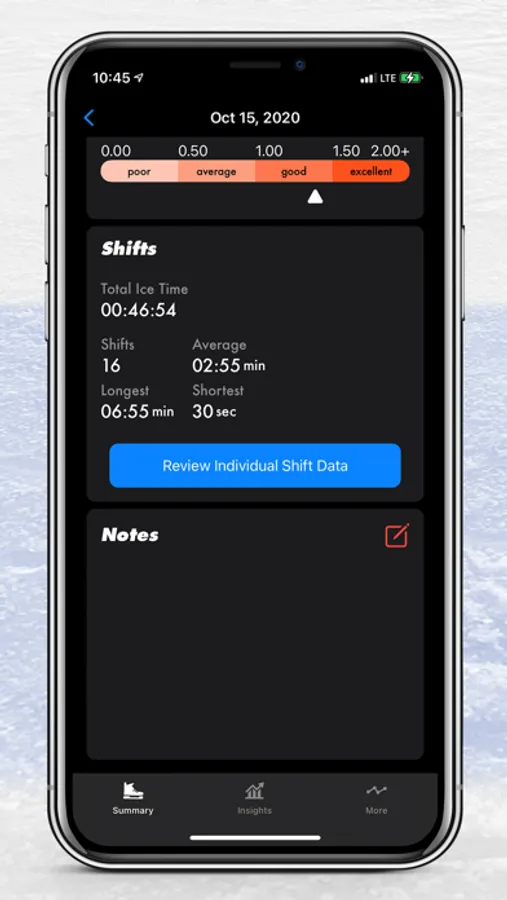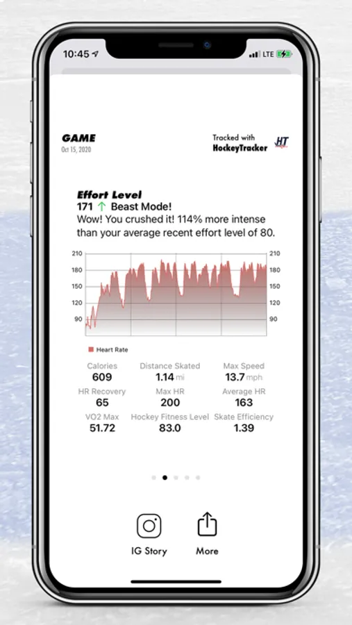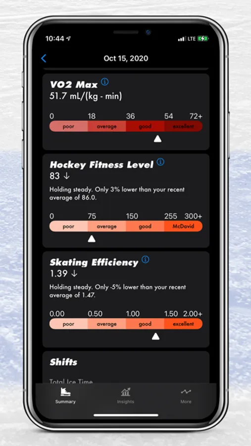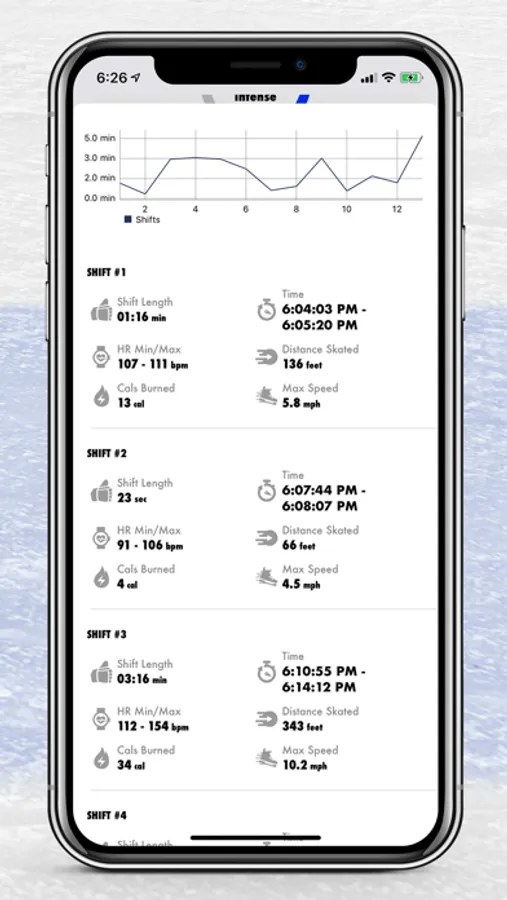 * Live In-Game summary of your last shift (duration, cals, distance, and avg speed)