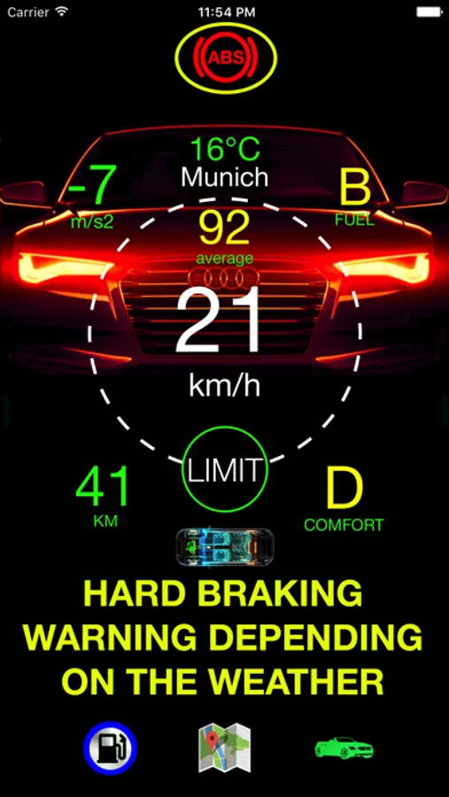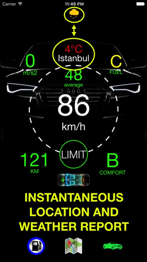 • You can always observe your actual speed, average speed, driven distance and instantaneous vehicle acceleration values on the screen.