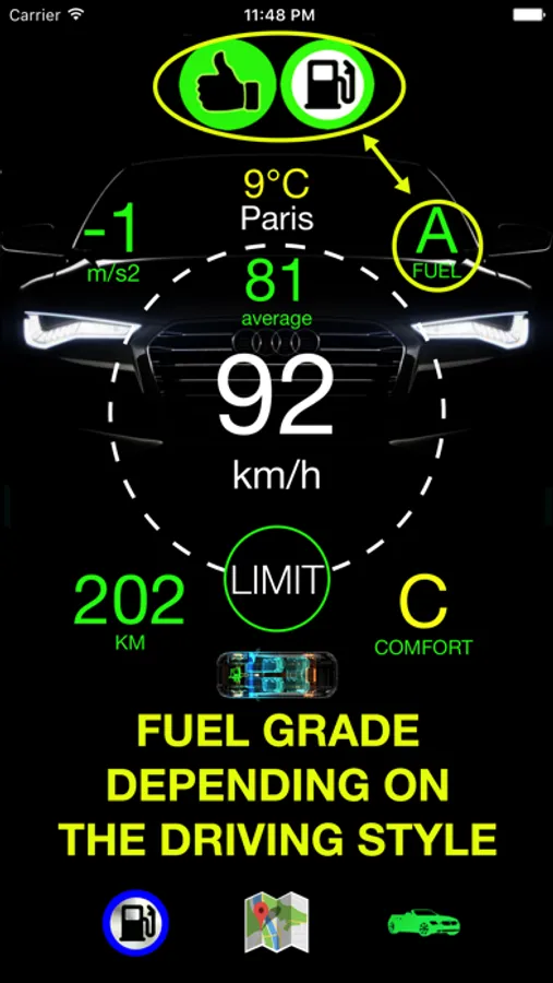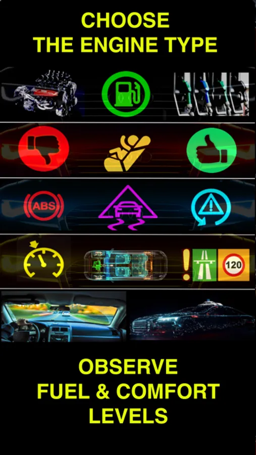 • You can observe your fuel consumption level according to your driving style and the engine type you selected. You can select the engine type from the fuel button in the left bottom corner.