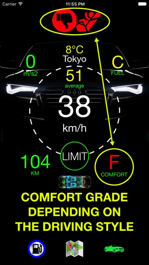 • You can observe your driving comfort level according to your driving style in longitudinal direction.