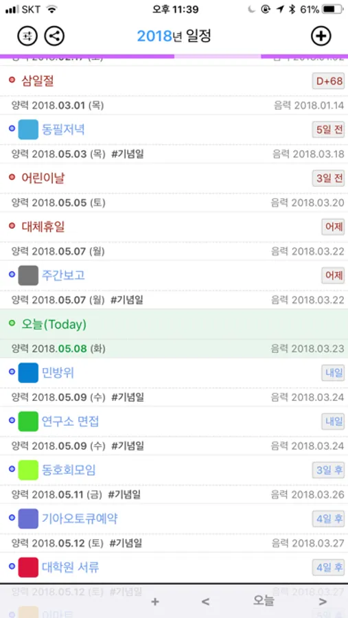9. 매년반복, 매달반복 지원 (음력 매월반복지원)